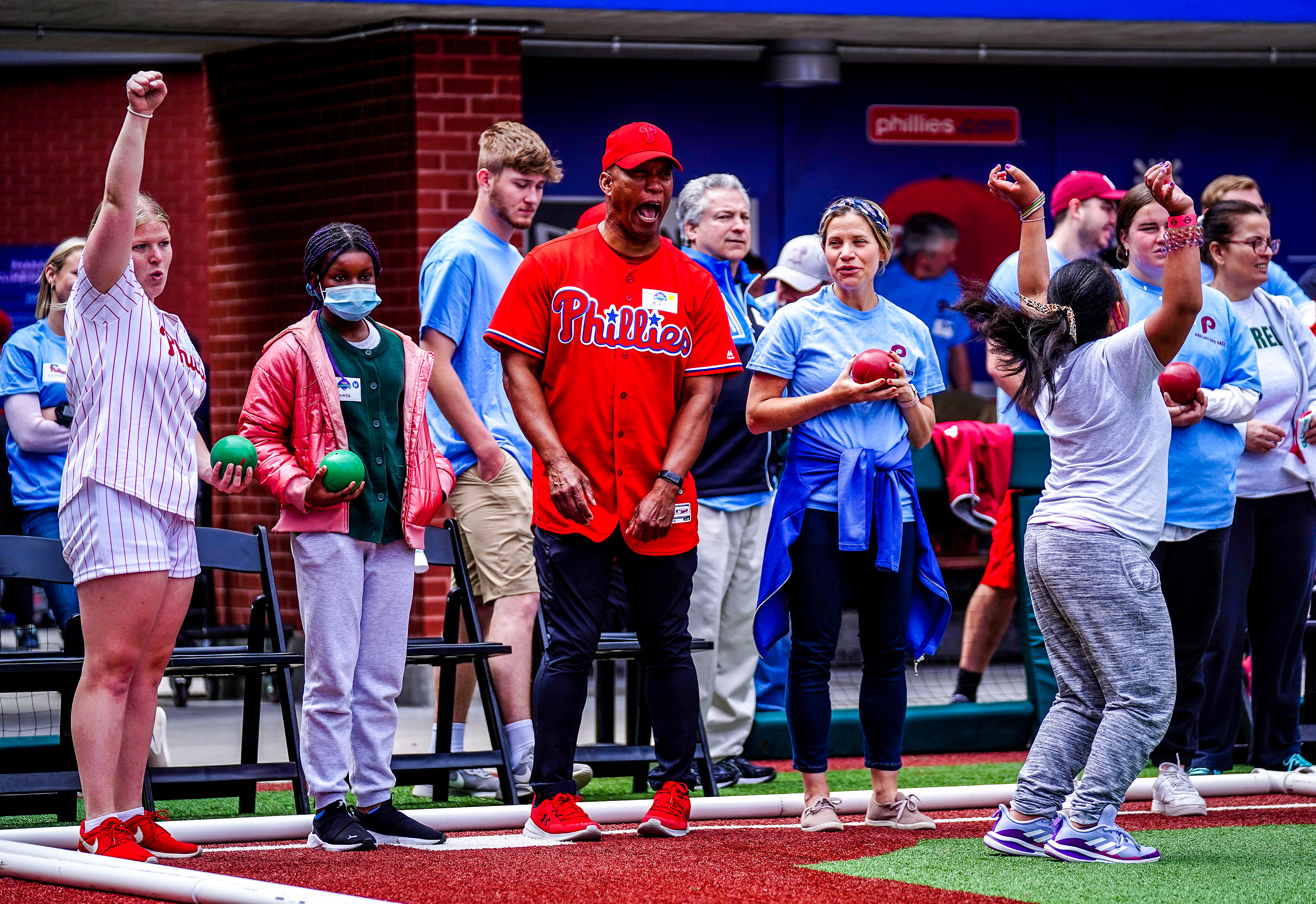 Unified sports pairs people with and without intellectual disabilities on the same team! The Phillies’ front office staff came out to participate in the event, along with former Phillies Mickey Morandini and Milt Thompson and announcer Scott Graham! We can’t thank the Phillies enough for all of their support and energy and for cultivating such an inclusive atmosphere at Citizens Bank Park!
